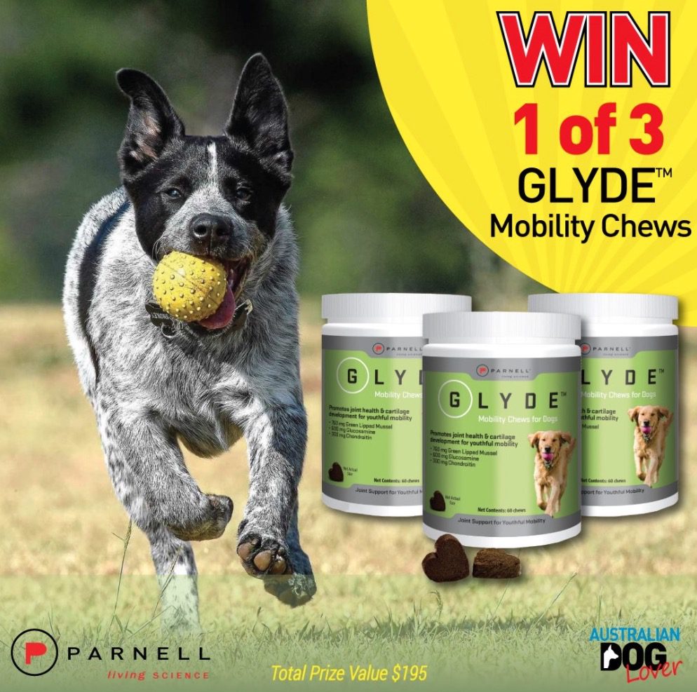 Enter the new Australian Dog Lover Competition for your chance to Win one of three GLYDE Mobility Chews for your Dogs.