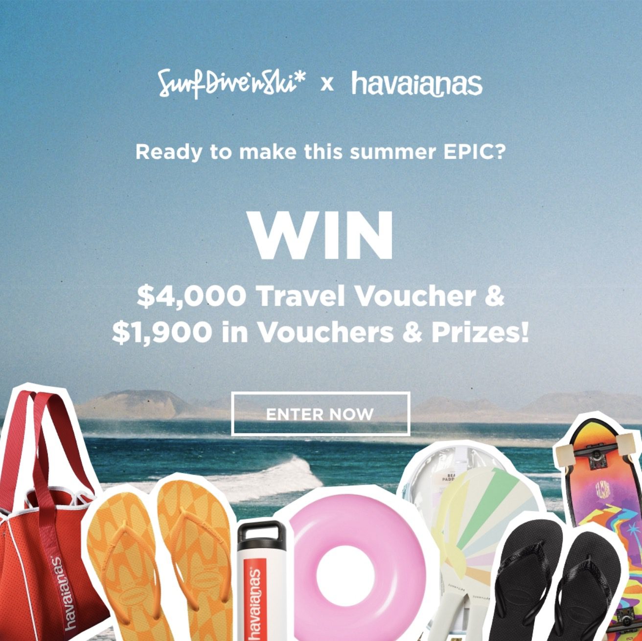 Enter the Surf Dive ‘n Ski and Havaianas Competition for a chance to Win a $4,000 Travel Voucher and $1,900 in prizes.